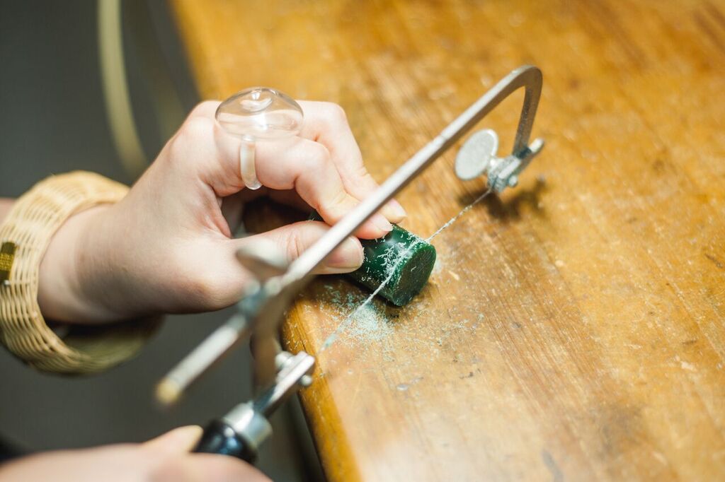 まずは輪っか・棒状の「ロウ」を、作りたい厚さと自分のリングサイズに内側を削り、外側を好きな形に形成していきます。