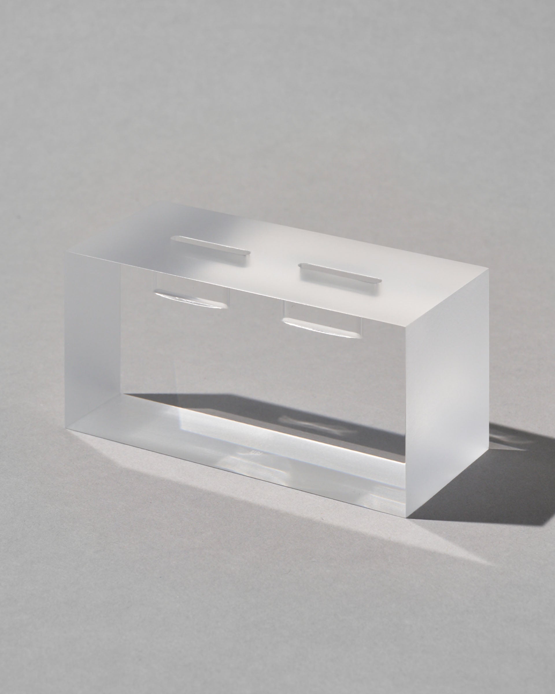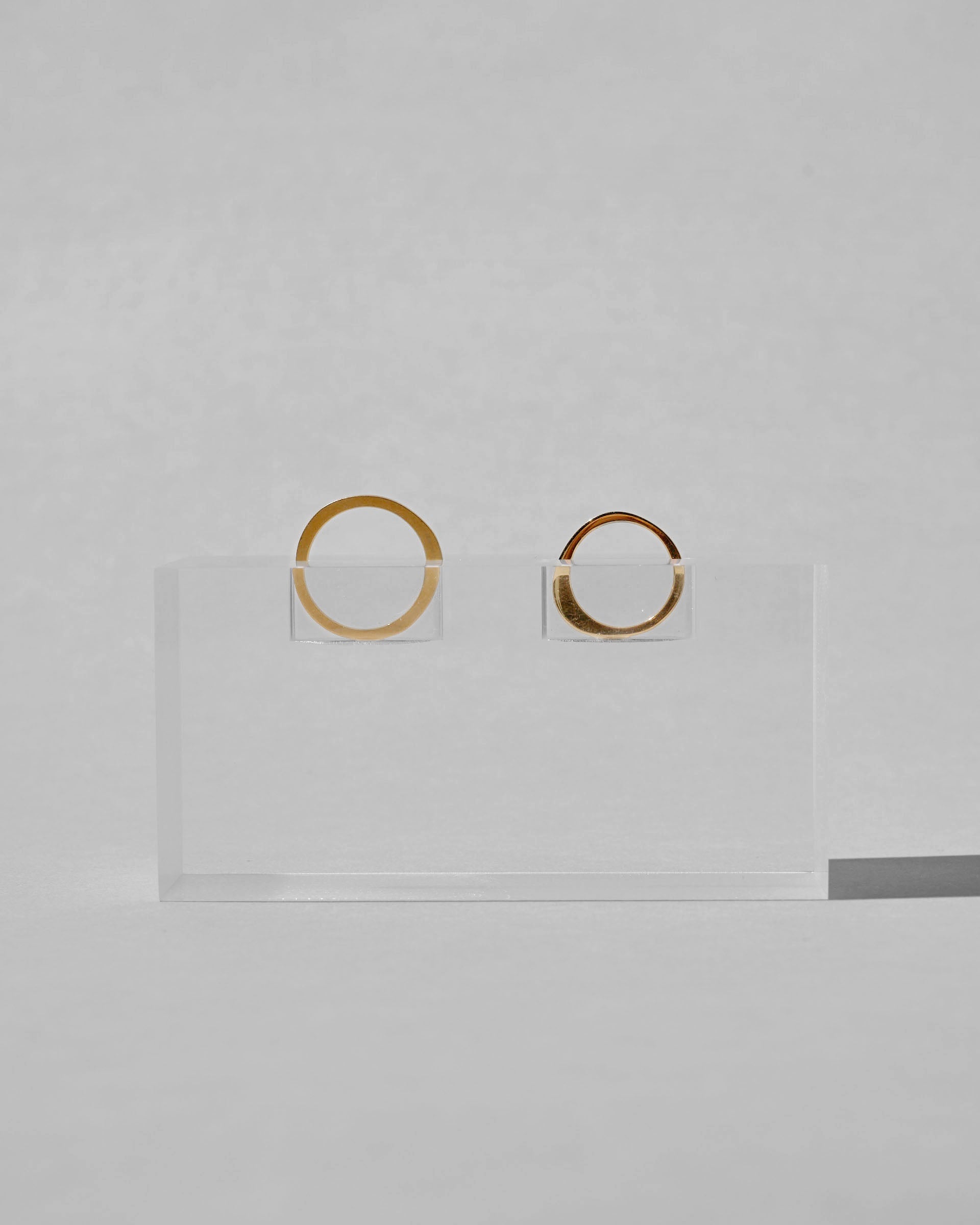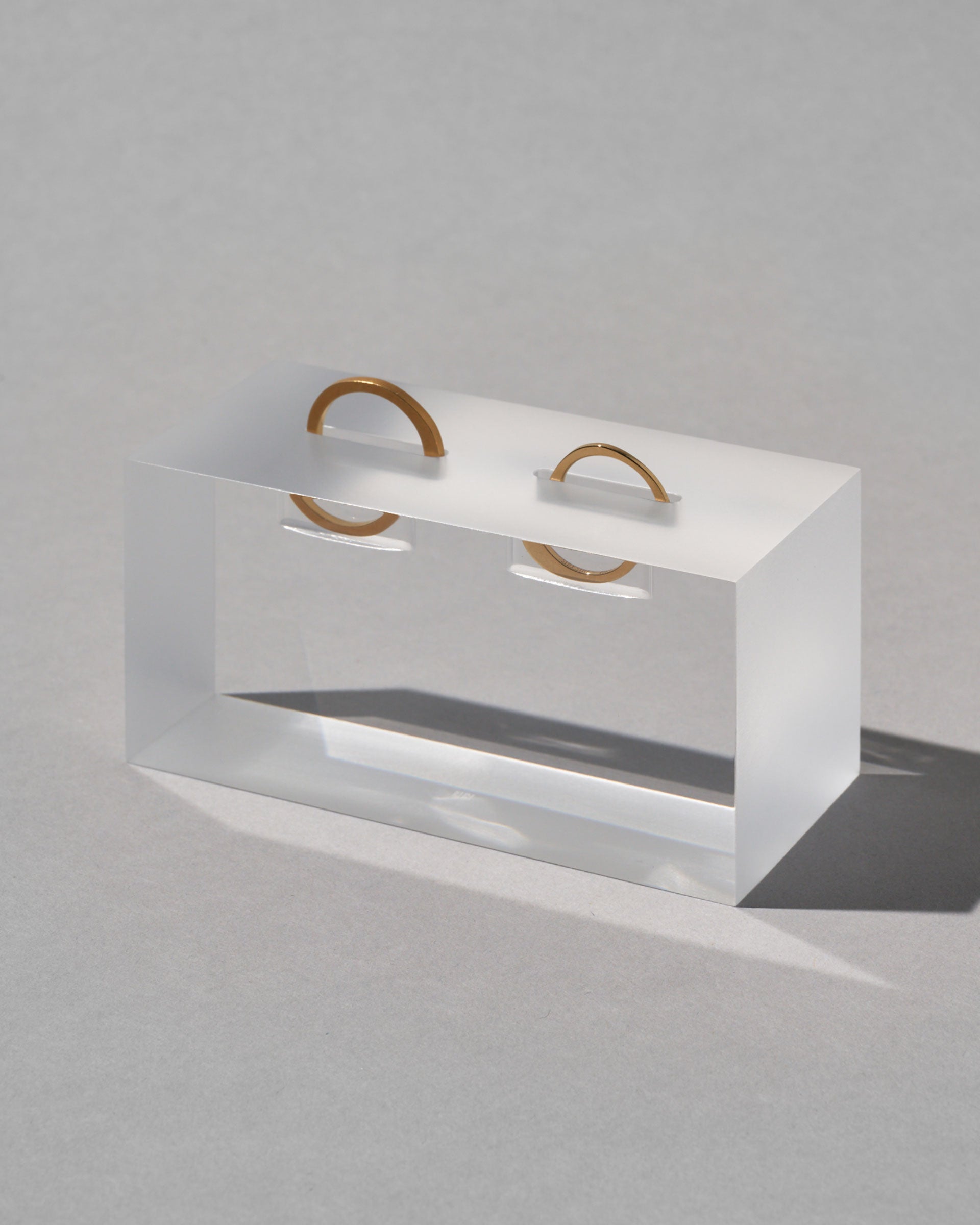 A ring holder that highlights the beauty of acrylic that catches the light.