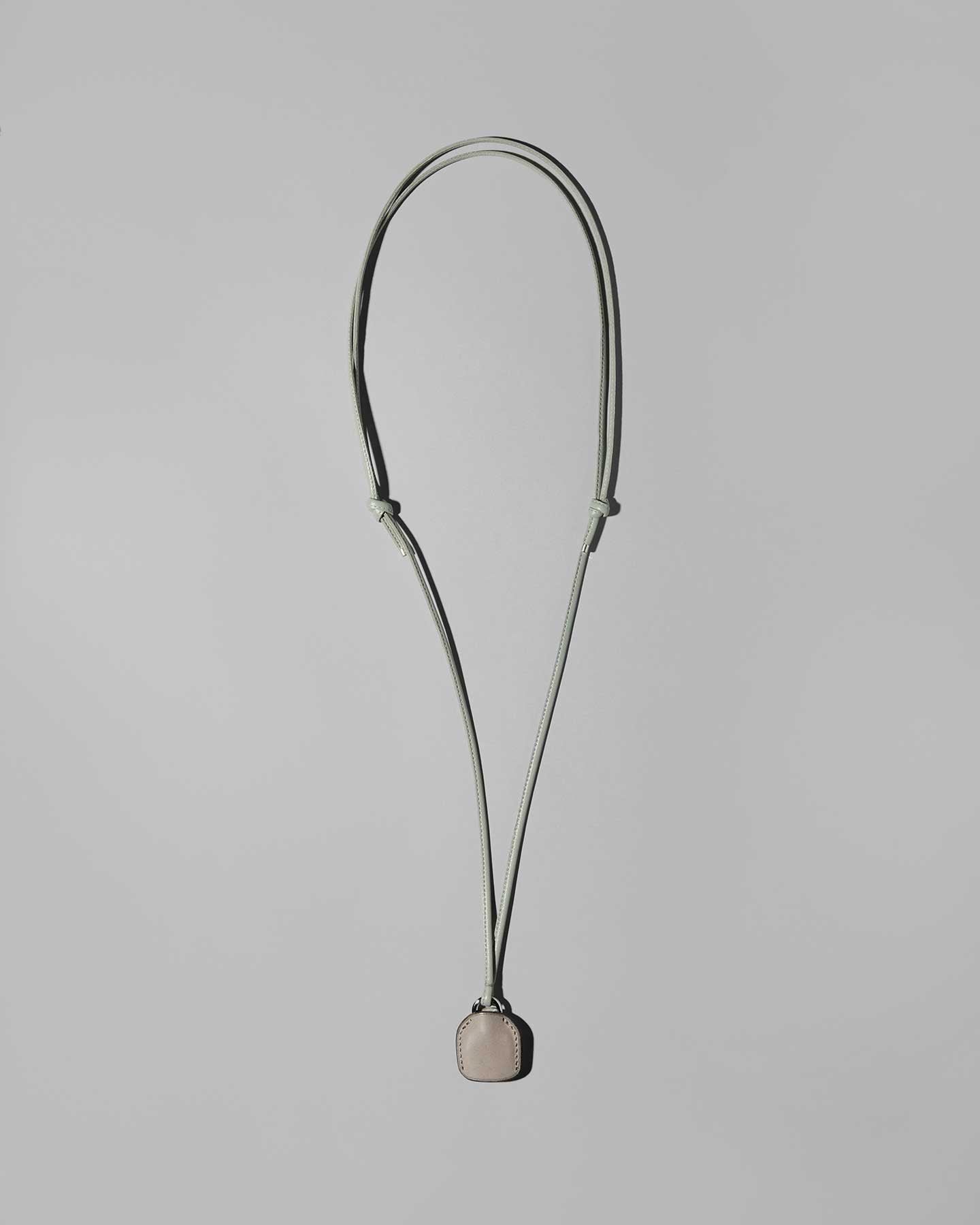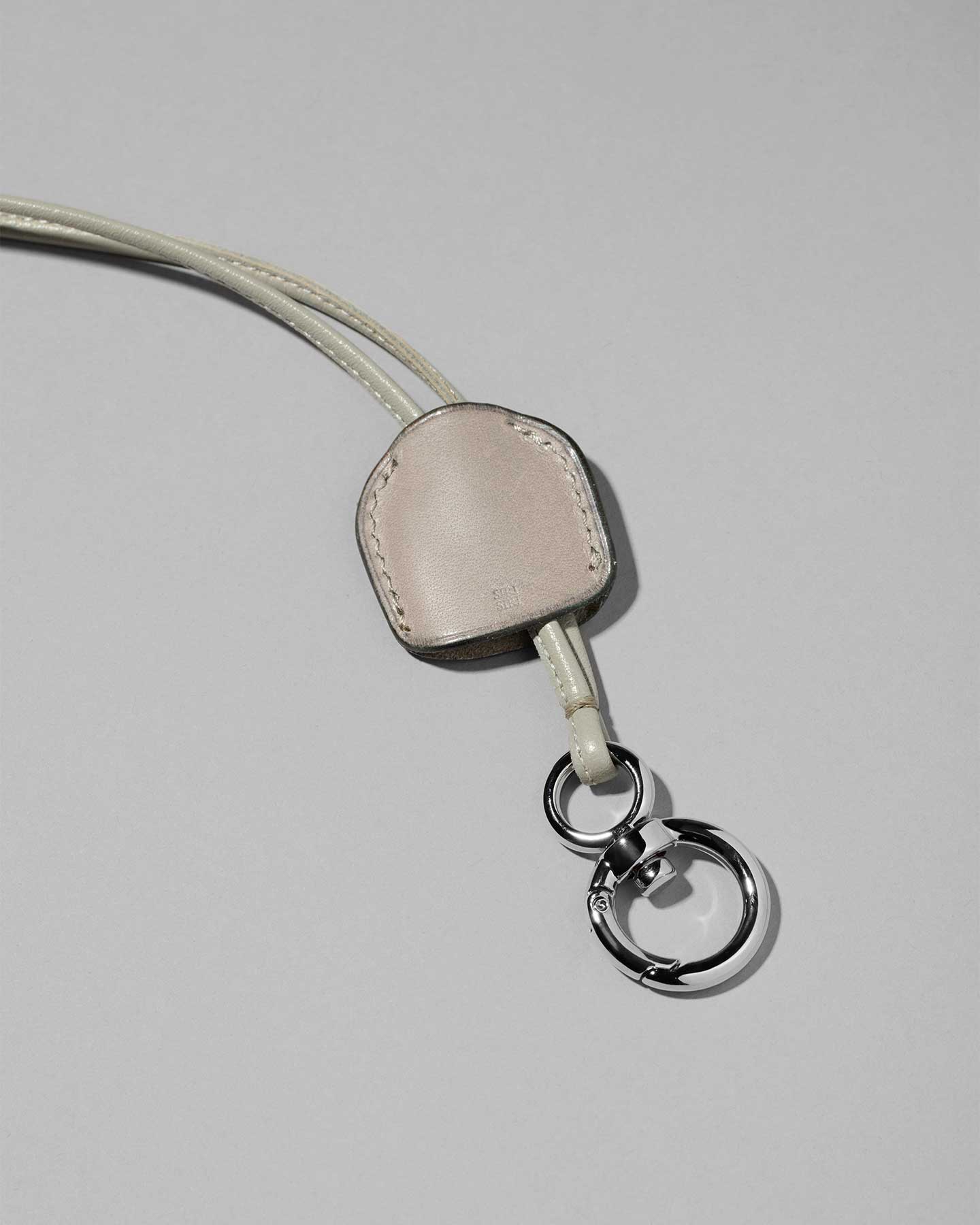 ニュアンスのあるグレーカラーが魅力のレザースマートフォンストラップ。