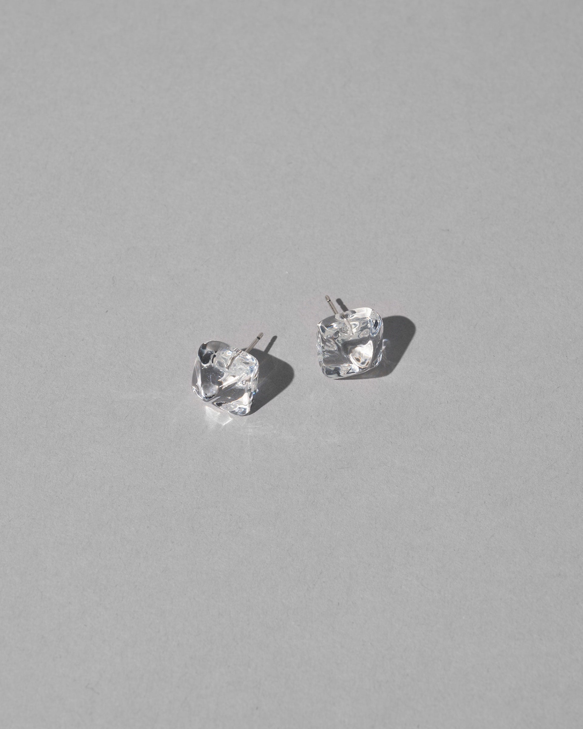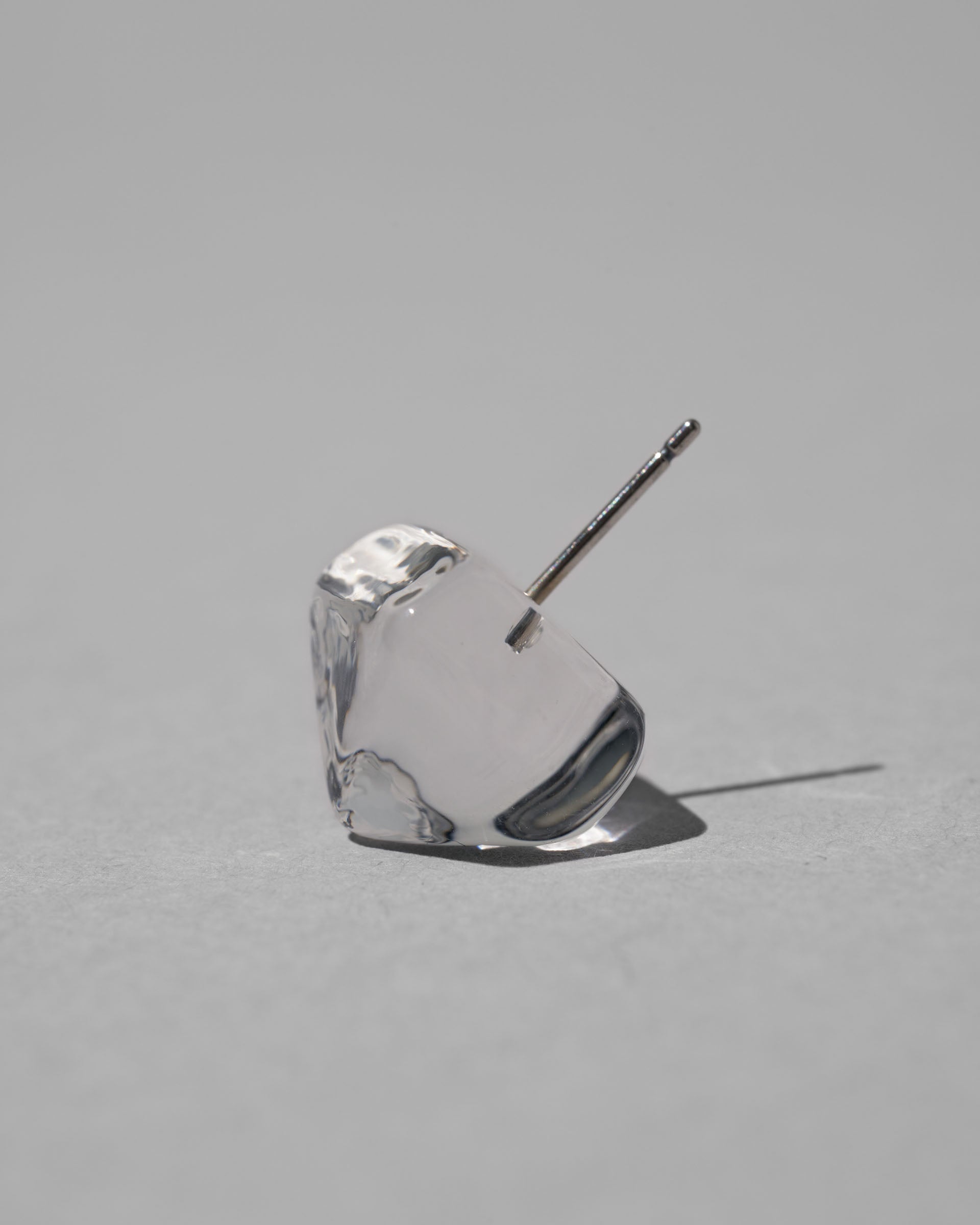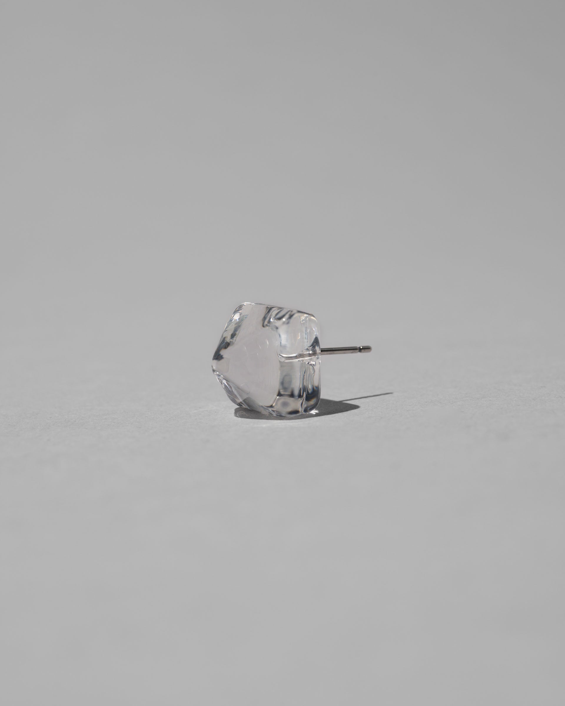 A single earring that expresses hard studs with glass. Its ice-like appearance gives you a feeling of edgy hardness and fragility that seems to melt when you touch it.