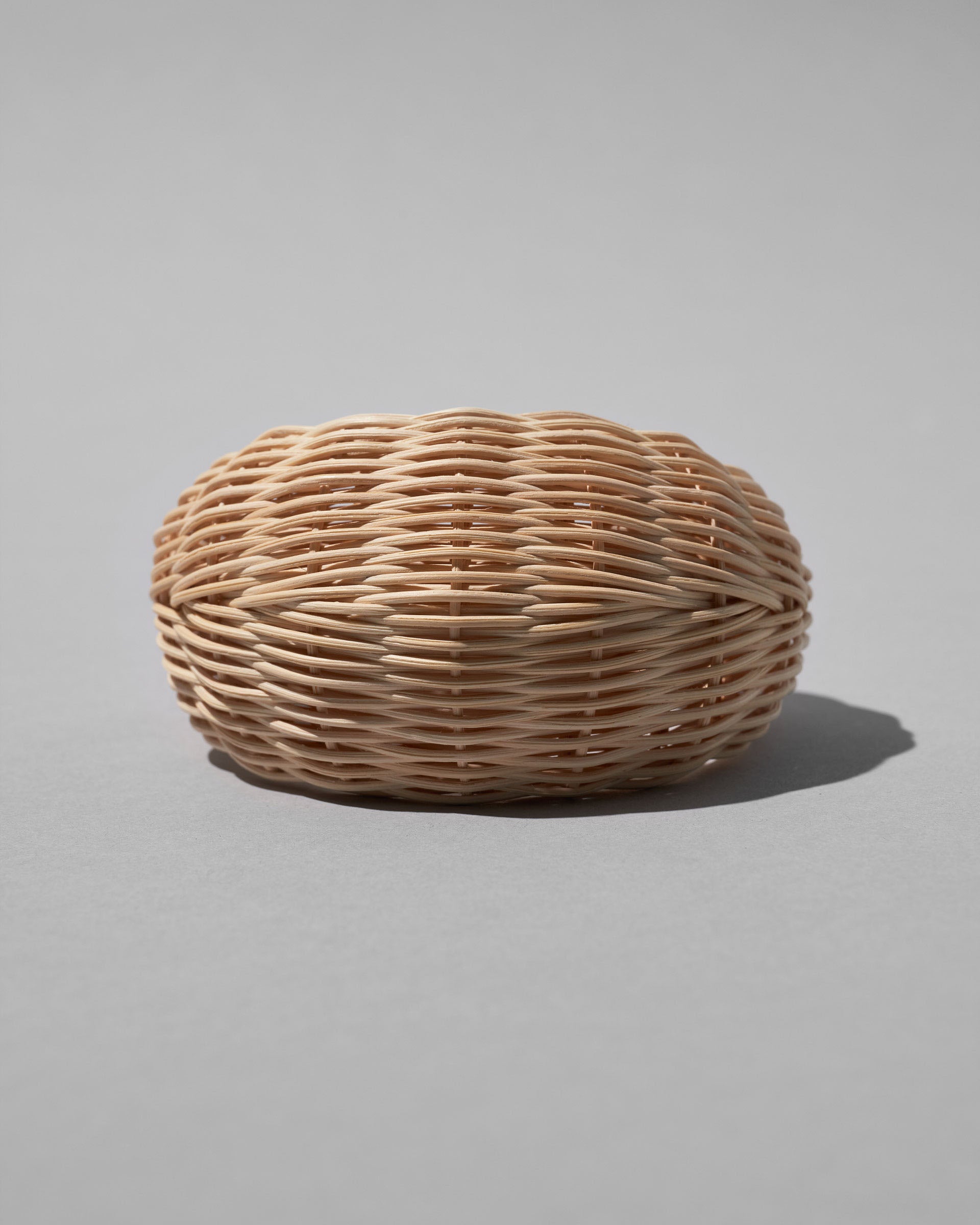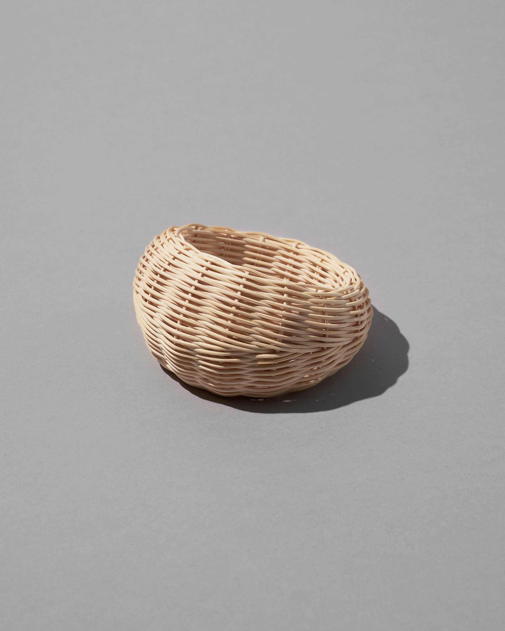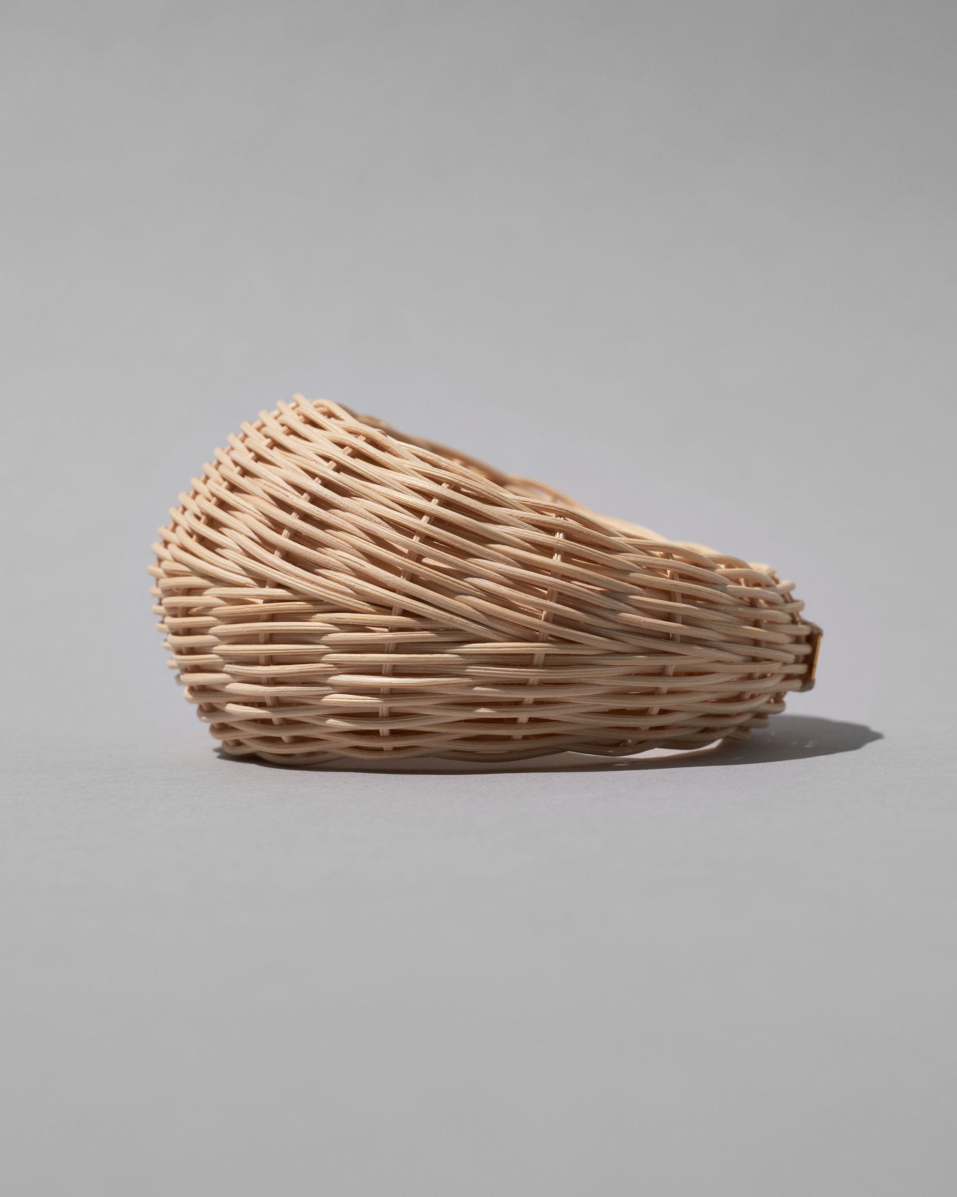 日本を代表するインテリアデザイナー、剣持勇のラタンチェアにインスパイアされて生まれたバングル。籐工芸職人が籐を1本1本磨き上げ、ジュエリーへと昇華しています。内側まで編み込むことによって、スムースなつけ心地に仕上げました。立体的なフォルムに、トップのエッジが引き締まった印象をもたせてくれます。