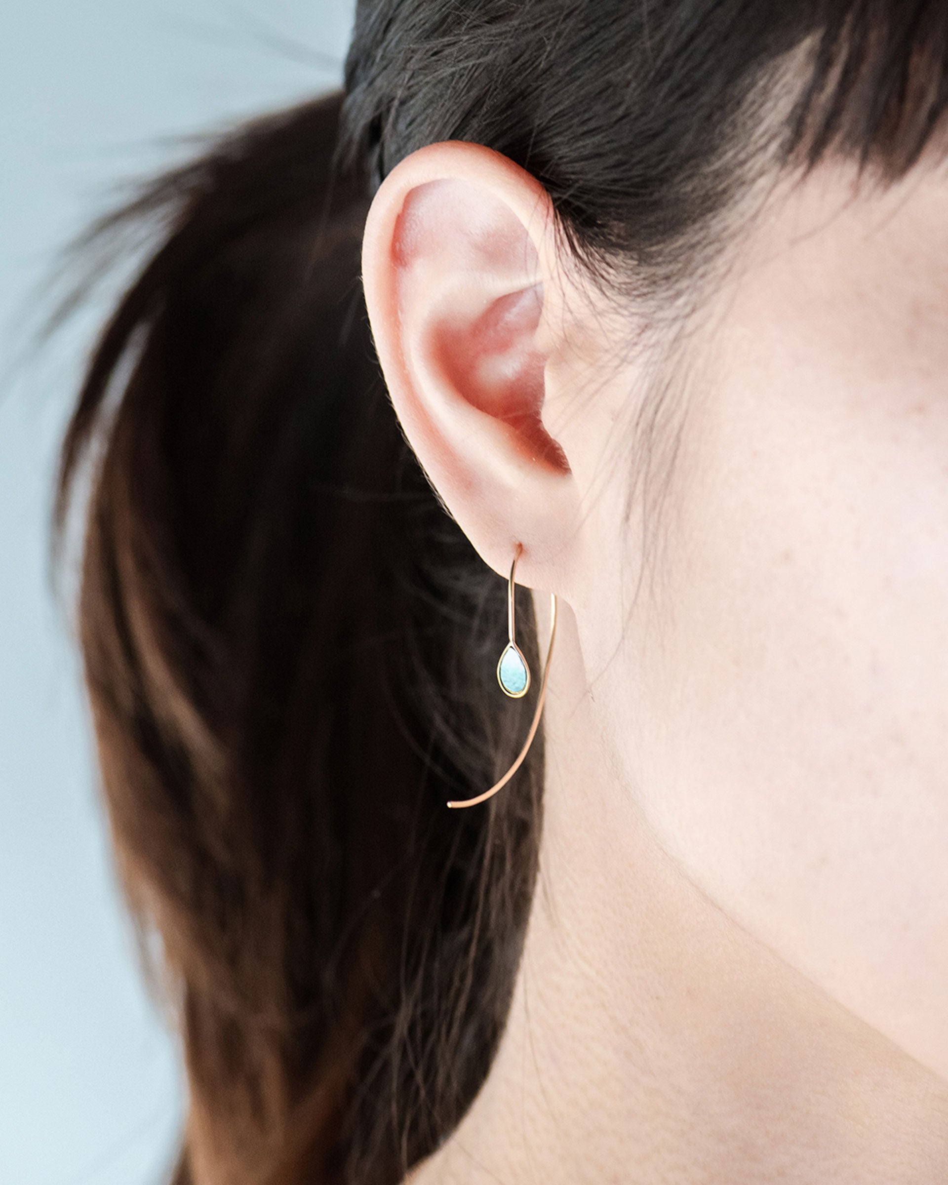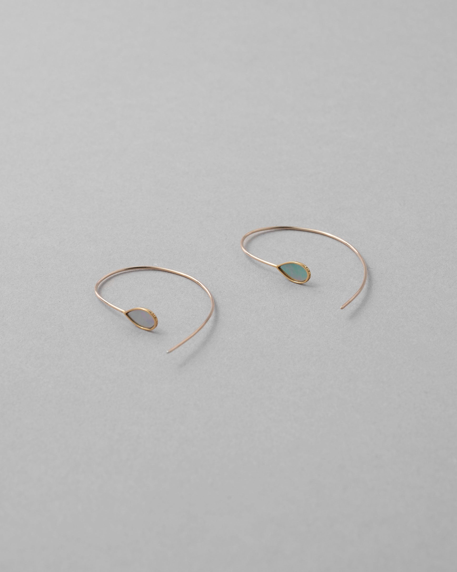 Introducing refreshingly clear blue grey pieces from the popular RADEN series. Custom made by a makie (lacquerware) artist to suit the SIRI SIRI aesthetic, the blue grey raden and simple design employing mother-of-pearl inspire a fresh and graceful impression. A delicate line as if to melt into the air, the beautiful golden curve of Earrings Eve sway at the ear to add elegance to your look.