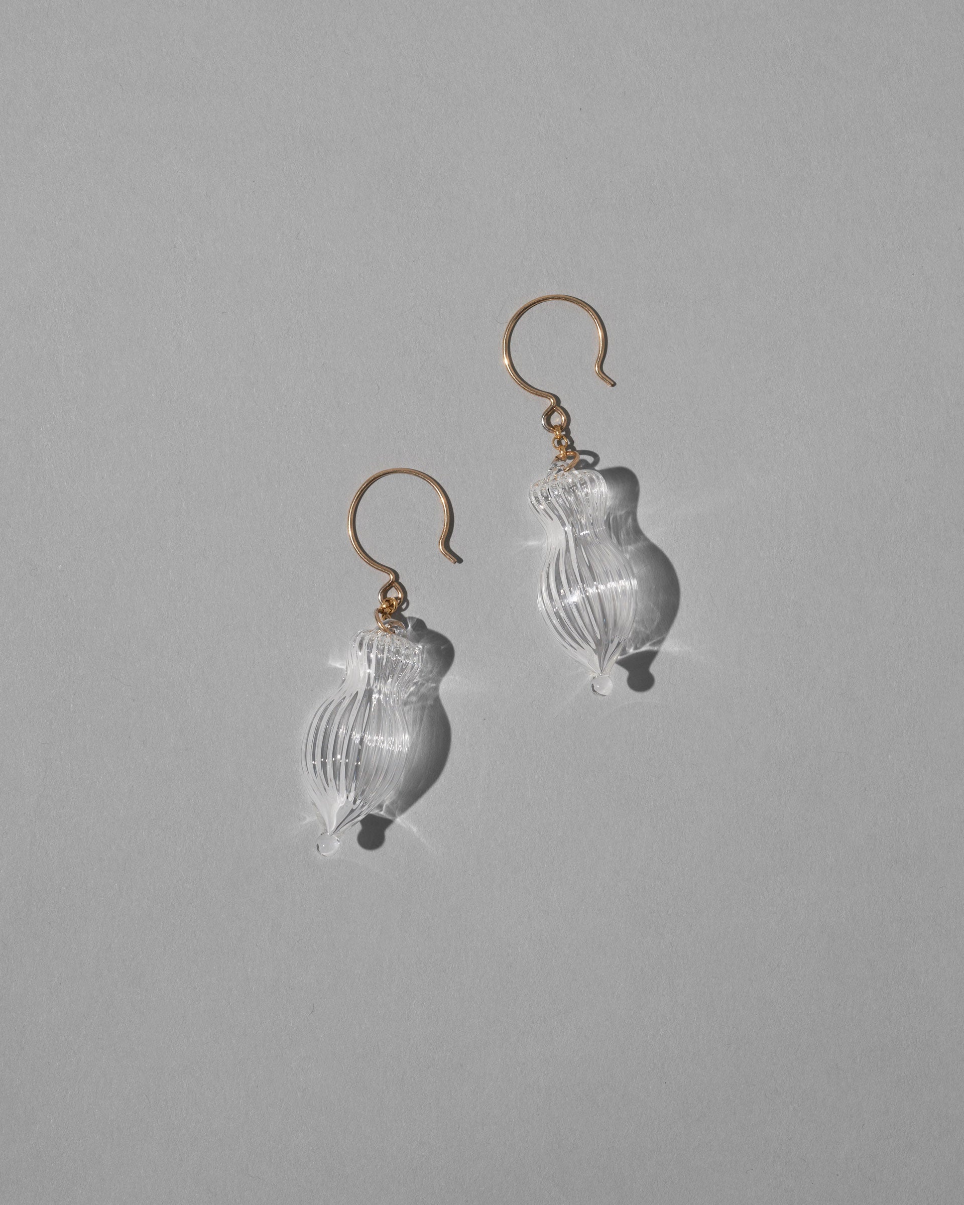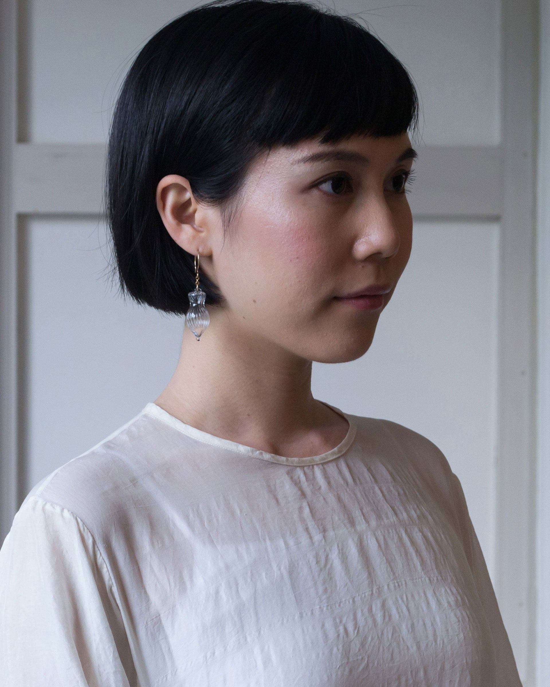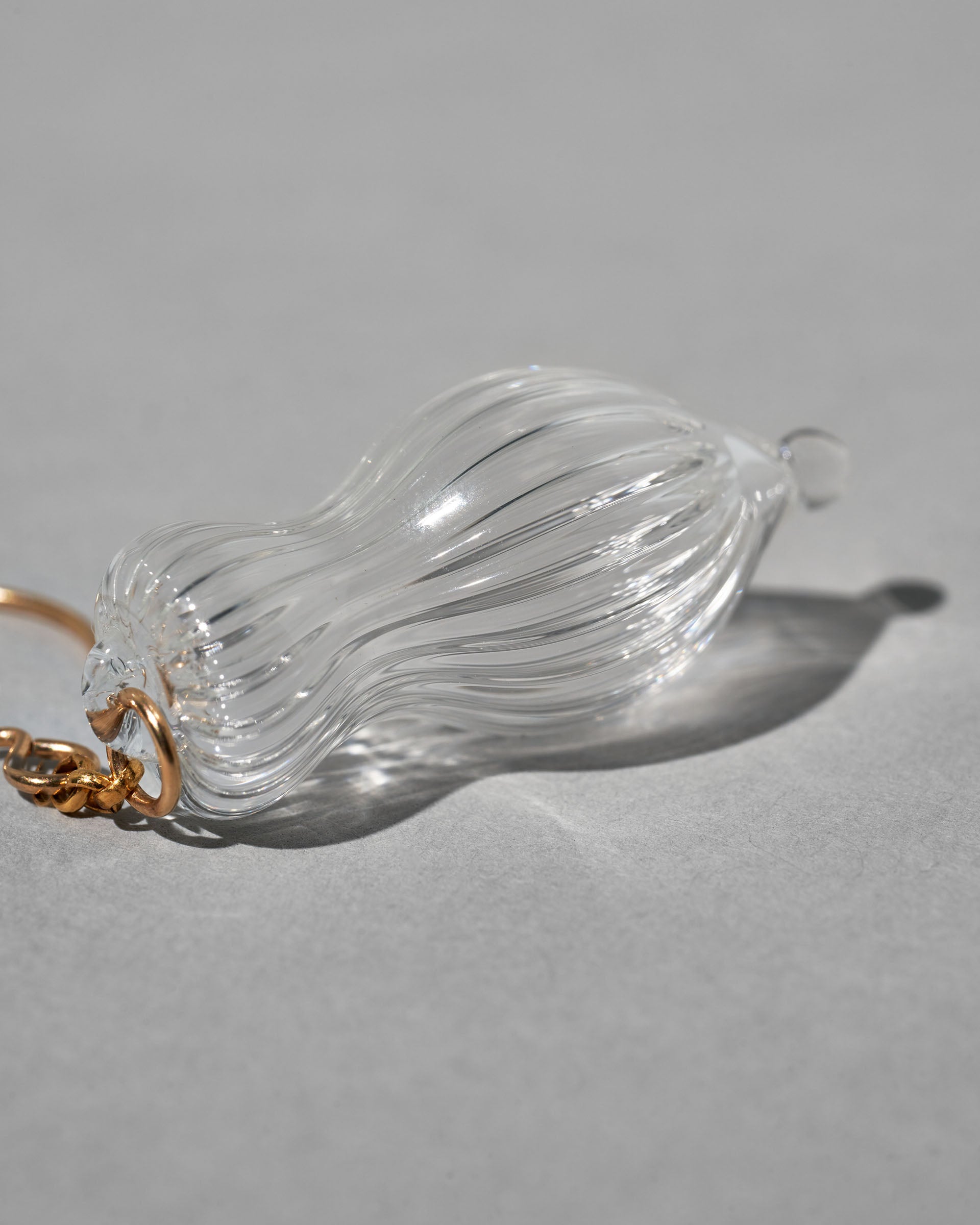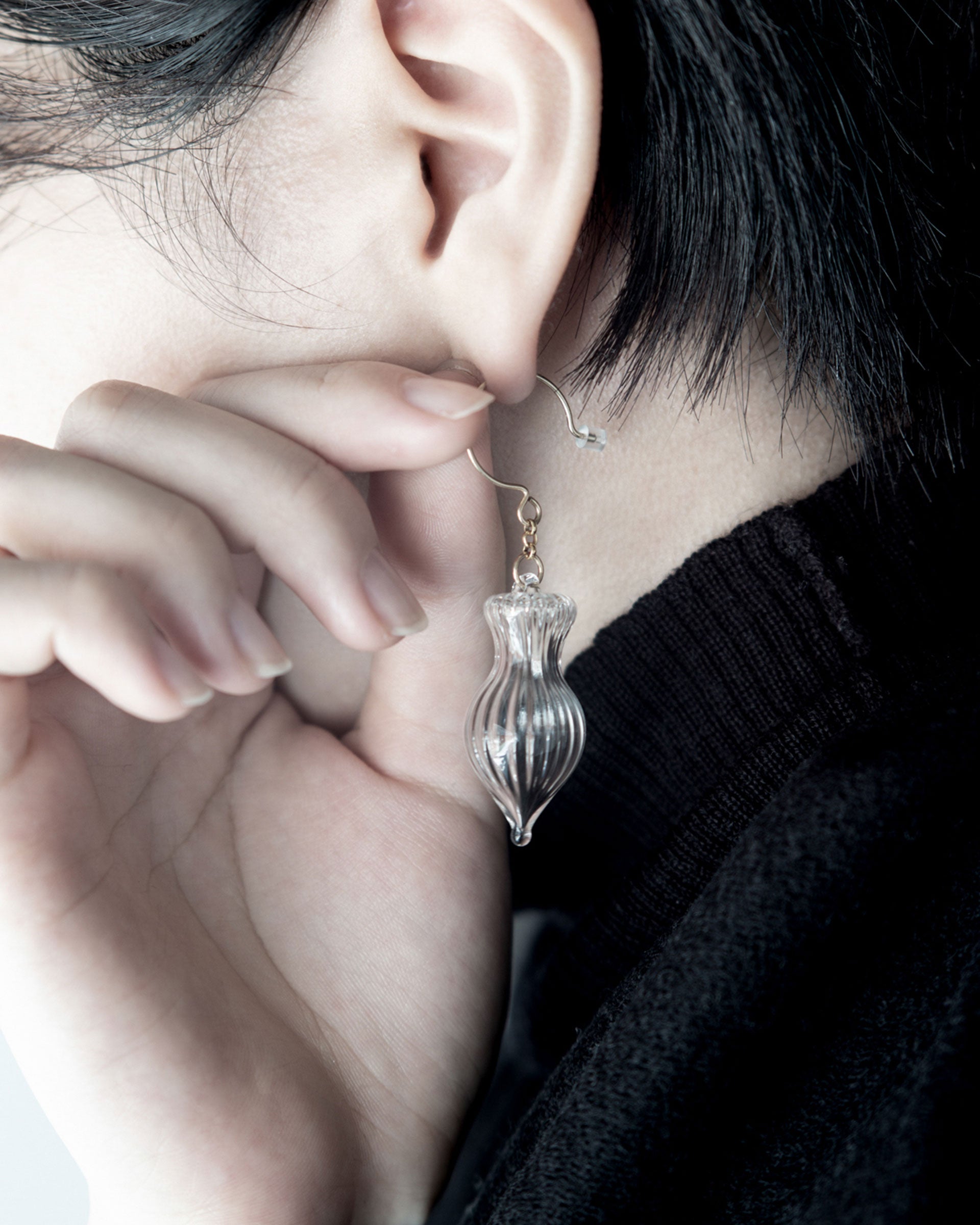 チェスの駒にインスピレーションを得たモチーフがまるでオーナメントのように軽やかに揺れる、華やかな雰囲気をまとったピアスです。1本のガラス管から、バーナーワークの職人が一つ一つかたちを作り出します。