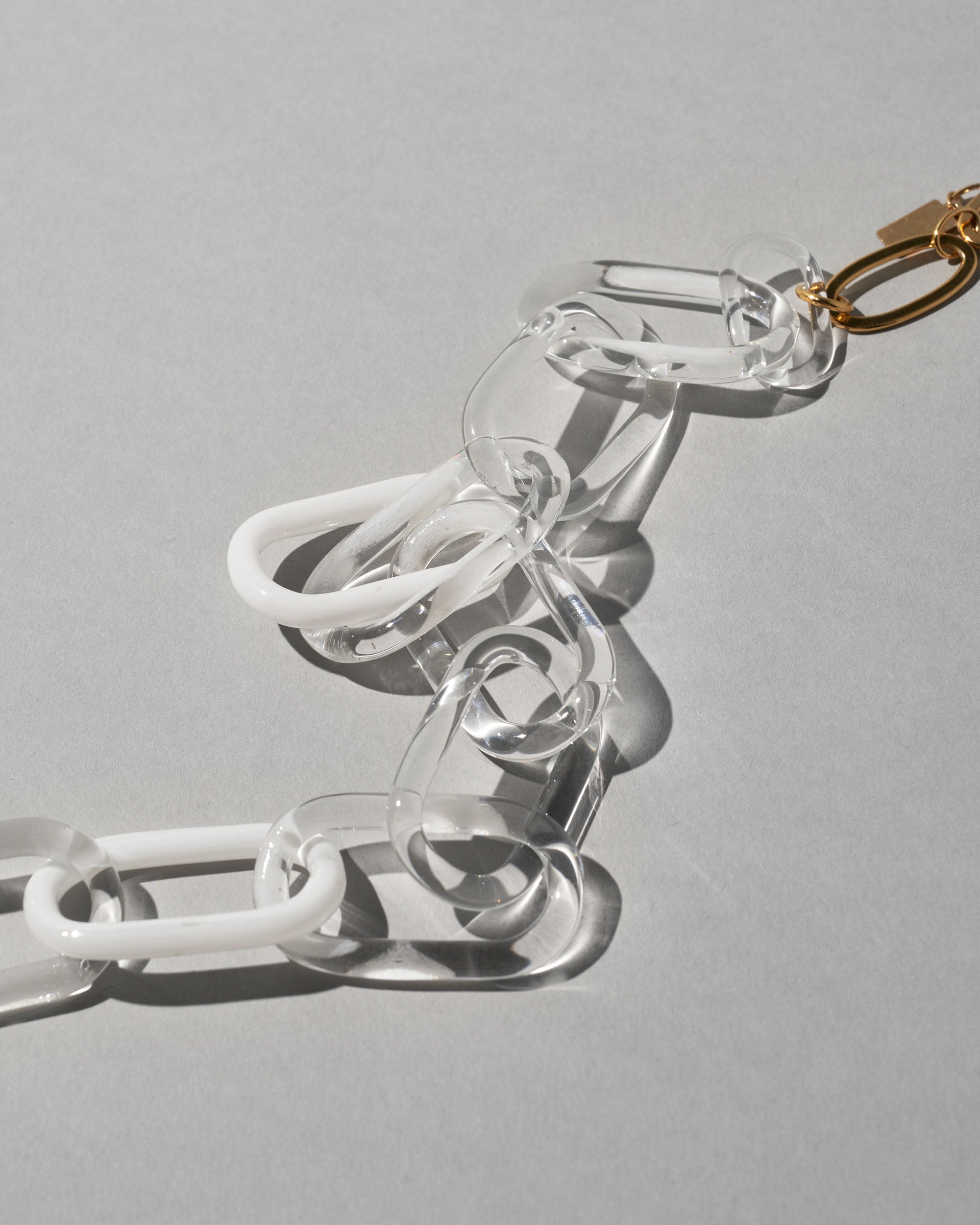 〈CHAIN Necklace〉はクリアガラスと色ガラスを組み合わせ、バーナーワークの職人の手で一つ一つ仕上げられたガラスチェーンと、上品で絶妙なカラーリングがもたらす透明感が魅力です。