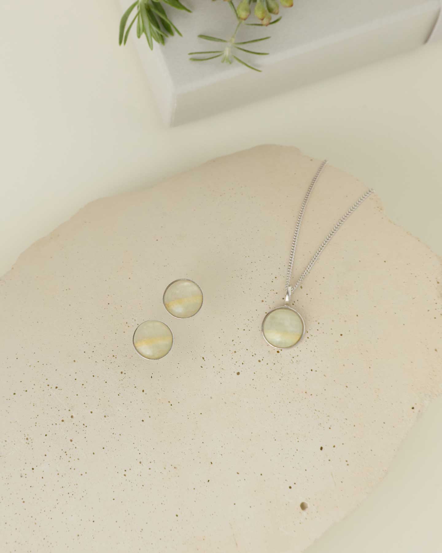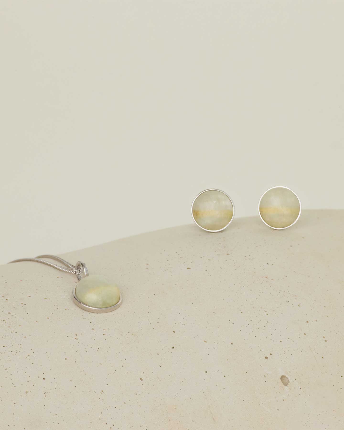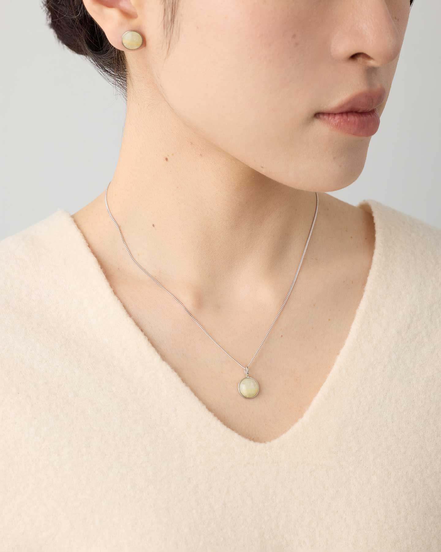 デザイナーが訪れたスイスの小さな工房で厳選された石は、透明感のある緑がかったクリーム色に、柔らかな黄色が差し込む、表情豊かな色合いです。