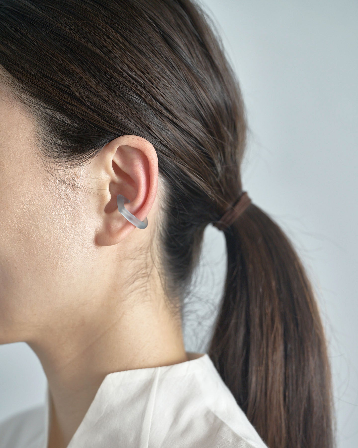 スイスを流れるアーレ川をガラスに閉じ込めたような〈HOTOLI Collection〉。SIRI SIRIで人気のガラスイヤーカフの「Ear Cuff Line BLUE」ができました。「Line」が表す特徴的なU字のカーブは、ベルンの旧市街を囲むように流れるアーレ川の形からインスピレーションを受けています。豊かに流れる水を思わせる「BLUE」は、〈HOTOLI Collection〉で初めて登場したブルーのガラスを使用。丸みのある方を内側にしても外側にしてもお使いいただけます。