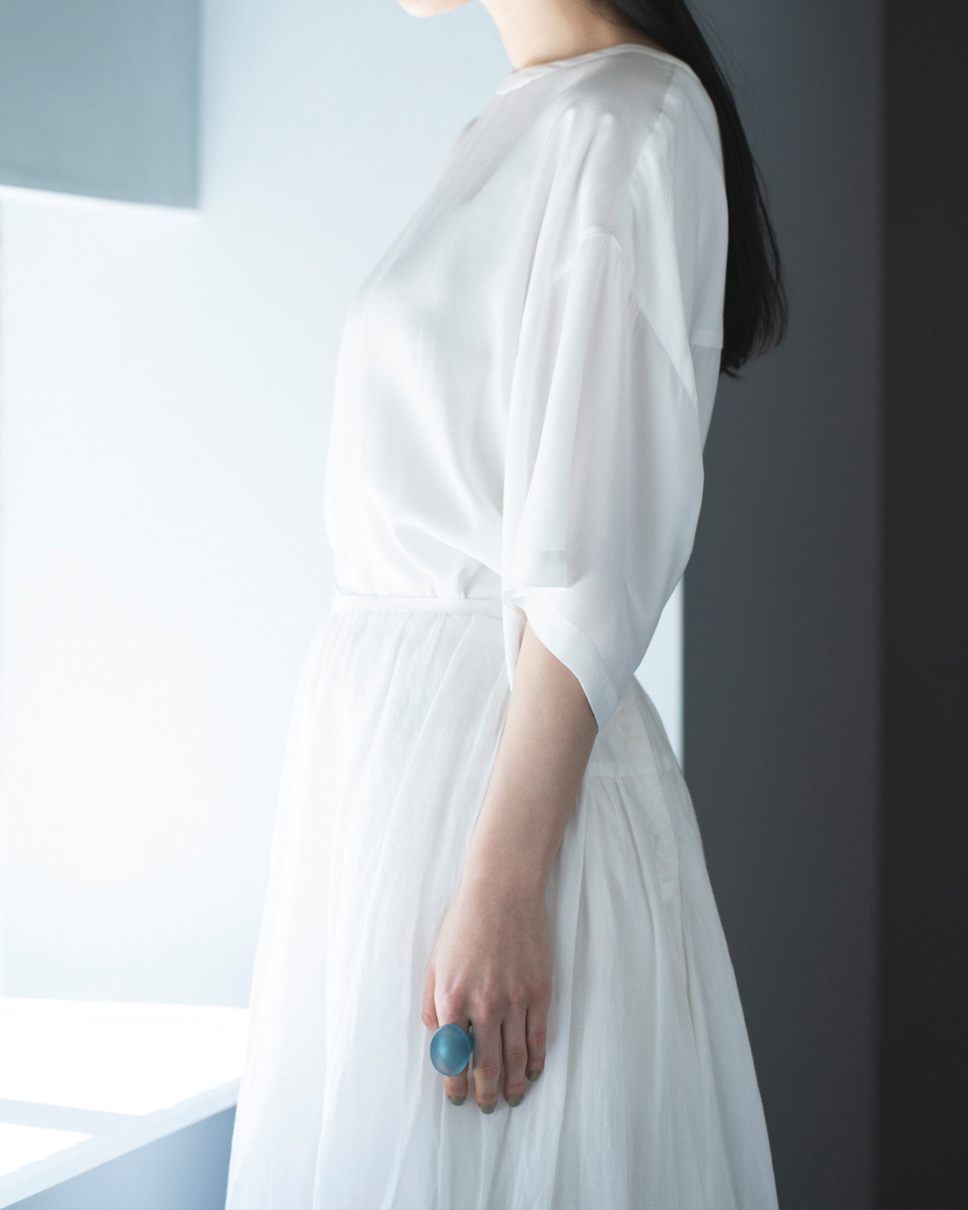 夏の光を受けて透明に輝く宝石のような川。その畔でゆっくりと流れる人々の生活。美しい自然の情景と、季節とともに移り変わるその表情を閉じ込めたようなガラスのジュエリーたち。身に着けることで、水の色や輝きをいつまでも永遠にみていられる…そんな願いが込められています。