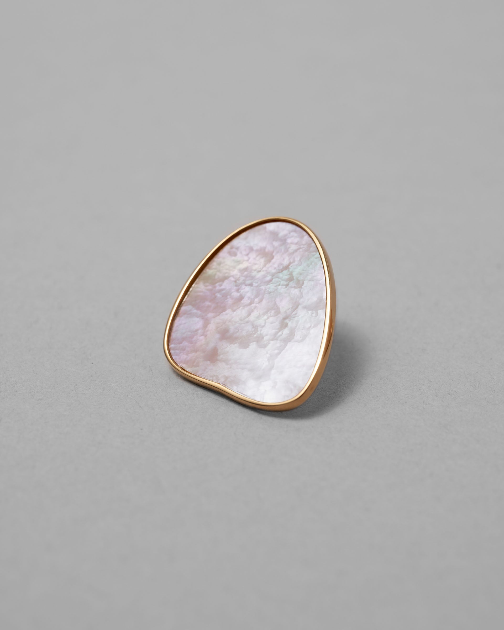 薄さ0.1ミリ以下の貝シートの背面に独自に配合した白漆を塗装。貝そのものの七色の光が活きるピンクがかった白色です。