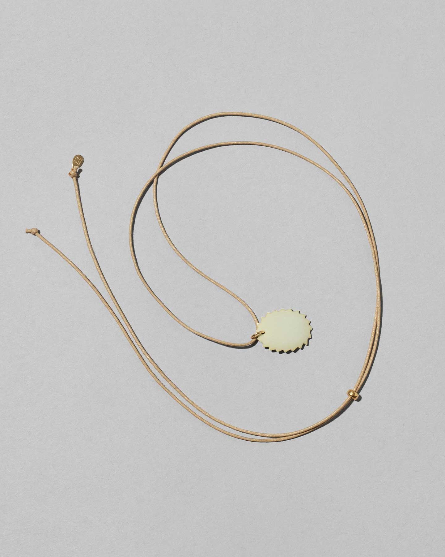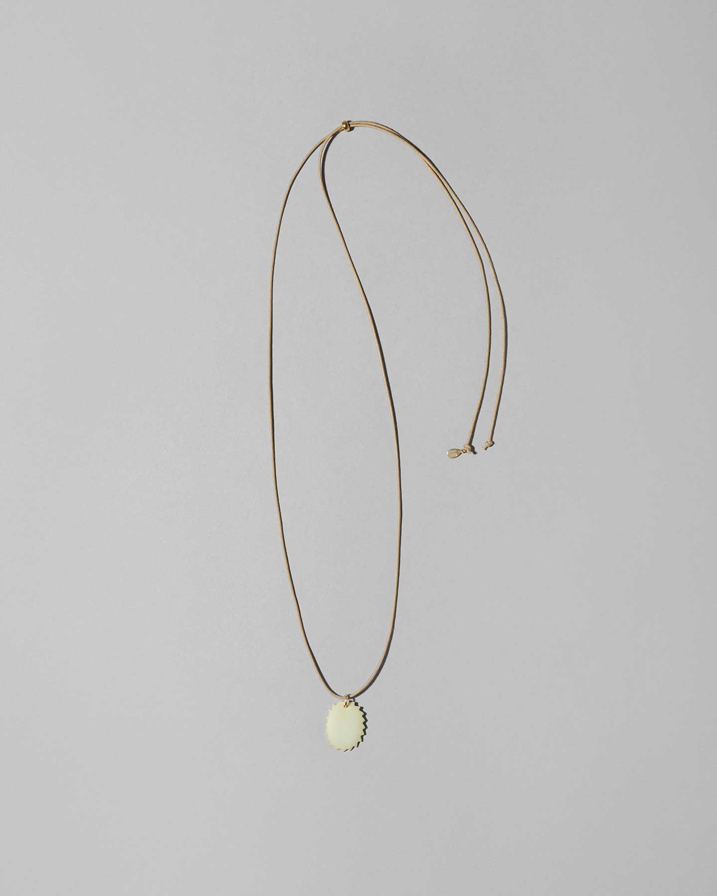 コットン100%ロー引きのコードを使用。長さの調節が可能で、洋服に合わせたアレンジが楽しめます。